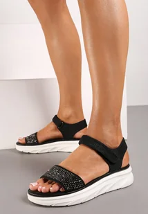 Czarne Sandały na Platformie Zapinane na Rzep Ozdobione Cyrkoniami Kristal