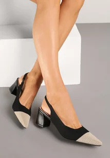 Czarne Sandały na Słupku Typu Slingback z Kontrastowym Noskiem Udivira