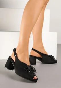 Czarne Sandały ze Skórzaną Wkładką i Aplikacją z Koralików Tuvirae