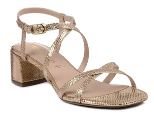 Eleganckie sandały damskie na wygodnym obcasie. Złote efektowne tworzywo daje niesamowity efekt na nodze. Buty posiadają miękką wkładkę podnoszącą komfort uż...