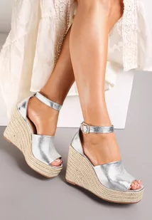 Srebrne Plecione Sandały na Koturnie i Platformie Fimieshe