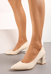 Beżowe Czółenka z Ekoskóry na Zdobionym Słupku Apasiloa