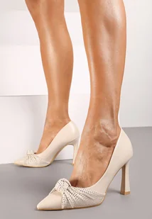 Beżowe Szpilki na Obcasie Typu Klepsydra z Cyrkoniowym Węzłem na Nosku Virimae