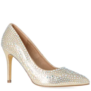 Wybór idealnych butów ślubnych nie należy do najprostszych. Każda z nas bowiem zdaje sobie sprawę z tego, że buty ślubne powinny nie tylko zachwycać swym niepowtarzalnym efektem wizualnym, ale być też komfortowe i wygodne. Na szczęście pochodzące z najnowszej kolekcji marki menbur— błyszczące szpilki, w pięknym odcieniu błyszczącego złota łączą w sobie wszystkie te cechy — są nie tylko piękne, ale też bardzo wygodne. Wspaniałe, szalenie zgrabne szpilki wykonane z błyszczącej złotej tkaniny obsypanej mnóstwem migoczących opalizujących kryształków. Klasyczny fason - szpilki , ze szpiczastym noskiem i smukłym obcasem, idealnie sprawdza się na szczególne okazje. Złote szpilki nadają się idealnie do roli obuwia ślubnego - ze śnieżnobiałą suknią komponują się doskonale. Buty pięknie prezentują się w zestawieniu z sukniami w stonowanych kolorach, będą wspaniałymi akcentami, który doda blasku każdej stylizacji.