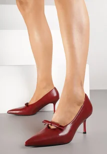 Bordowe Czółenka Vices na Szpilce ze Skórzaną Wkładką Ozdobione Kokardą Rileira