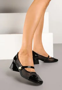 Czarne Czółenka Lakierowane na Słupku z Przezroczystą Wstawką i Perełką Sinnalia