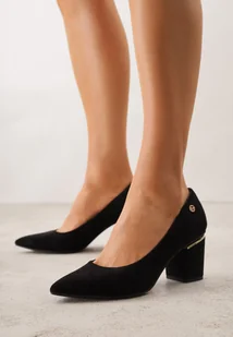 Czarne Czółenka na Obcasie ze Skórzaną Wkładką i Metaliczną Wstawką Rasmone