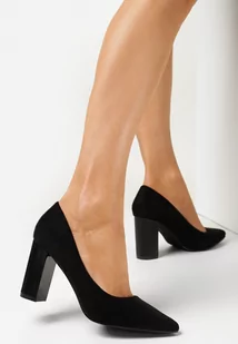 Czarne Czółenka na Wysokim Słupku ze Skórzaną Wkładką Nisho