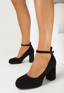 Czarne Czółenka z Imitacji Zamszu na Słupku Shilova