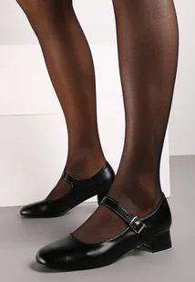 Czarne Klasyczne Czółenka Zdobione Paskiem i Sprzączką na Niskim Obcasie Vittia