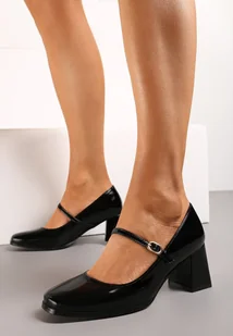Czarne Lakierowane Czółenka na obcasie z Ozdobnym Cienkim Paskiem Noobeta