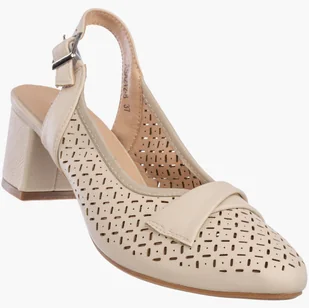 Czółenka Damskie Ekoskóra Buty Ażurowe Na Słupku Beżowe Jezzi ASA212-8 Beżowy 37 Czółenka damskie JEZZI z odkrytą piętą to eleganckie buty typu slingback na stabilnym słupku, które łączą kobiecy styl z codzienną wygodą. Wykonane z wysokiej jakości ekoskóry z ażurową cholewką zapewniają lekkość, przewiewność oraz modny wygląd idealny do sukienki, spódnicy czy eleganckich spodni. Skórzana wkładka, regulowany pasek ze sprzączką oraz komfortowy obcas sprawiają, że to doskonałe czółenka do pracy, na przyjęcie i wyjątkowe okazje. PARAMETRY I NAJWAŻNIEJSZE INFORMACJE: Ekoskóra wysokiej jakości – trwałość i estetyczne wykończenie Ażurowa cholewka – przewiewność i lekkość w cieplejsze dni Fason slingback – odkryta pięta z eleganckim paskiem Regulowana sprzączka – idealne dopasowanie do stopy Skórzana wkładka – miękkość i komfort użytkowania Stabilny obcas typu słupek – pewność kroku i wygoda Profilowana podeszwa – dobra przyczepność Uniwersalny charakter – do pracy, na uroczystości i na co dzień ROZMIARÓWKA:
