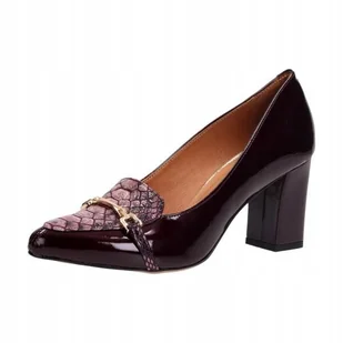 Czółenka Prestige 2110/OBL bordo skóra lakierowana słupek