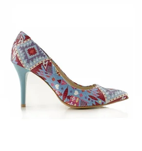 Czółenka skórzane na szpilce Eleganckie czółenka ze skóry naturalniej, na szpilce, ozdobny kolorowy wzór. Wygodne, nietuzinkowe, idealne do codziennej stylizacji i do biuro. Szczegółowy opis - skóra naturalna ...