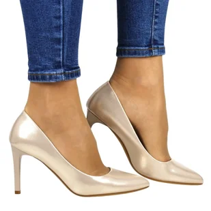 Czółenka Szpilki Sergio Leone 1339 Satynowy Złoty