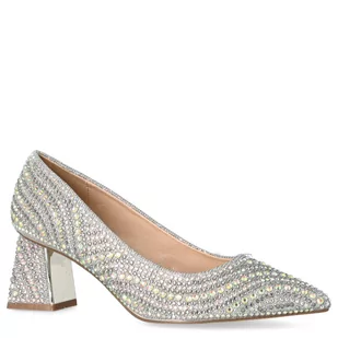 Poszukujesz butów na wyjątkową okazję? Cenisz sobie wygodę, a jednocześnie nie chcesz tracić na wyglądzie, to spójrz na nasze najnowsze czółenka, pochodzące od marki MENBUR. Ten model z pewnością Cię zachwyci! Obuwie w pięknym, srebrnym kolorze za sprawą 6 cm - obcasa typu słupek, jest nie tylko efektowne lecz bardzo komfortowe. Nosek uformowany w szpic wraz ze srebrną metalową wstawka to ideał na wiele okazji! Doskonale trzymają się stopy. Czółenka z mieniącymi kolorowymi cyrkoniami sprawdzą się doskonale na przyjęcie czy wesele, dodadzą blasku każdej stylizacji.