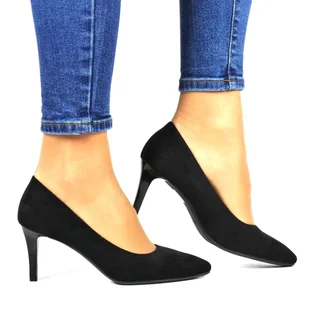 DAMSKIE CZÓŁENKA SZPILKI NA NISKIM OBCASIE SERGIO LEONE 1336 CZARNY ZAMSZ - Sergio Leone
