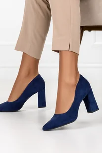 Granatowe czółenka Sergio Leone damskie na słupku skórzana wkładka PB216-CA