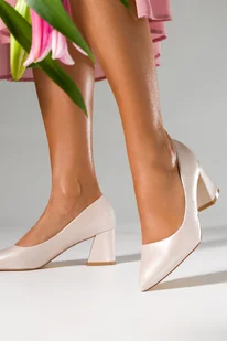 Perłowe czółenka na słupku damskie ze skórzaną wkładką Casu D23X3-PB