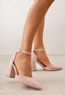 Różowe Czółenka z Imitacji Zamszu na Słupkowym Obcasie ze Szpiczastym Noskiem Hadina