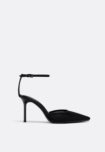 Szpilki z siateczką. Zapięcie na sprzączkę regulowanej bransoletki wokół kostki. Dostępne w kolorze czarnym. Wysokość obcasa: 8 cm