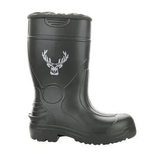 Kalosze Lemigo Hubertus 898 to wysokiej jakości męskie obuwie wykonane z lekkiego i wytrzymałego tworzywa EVA, które jest w pełni wodoodporne. Materiał ten zapewnia doskonałą izolację termiczną i zachowuje elastyczność nawet w bardzo niskich temperaturach, do około −30°C. Model wyposażono w wymienną, trójwarstwową wkładkę ocieplającą składającą się z folii aluminiowej, filcu oraz kożucha, co pozwala dopasować obuwie do warunków pogodowych. Kalosze są wyjątkowo lekkie, dzięki czemu nie męczą stóp nawet podczas długiego użytkowania. Ergonomiczny kształt i elastyczna konstrukcja zwiększają komfort chodzenia i swobodę ruchów.