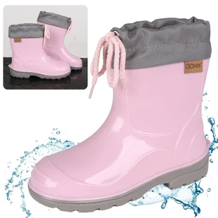 Stylowe i funkcjonalne kalosze dziecięce w kolorze różowym, idealne na deszczowe dni. Wykonane z wodoodpornego tworzywa, które skutecznie chroni stopy dzieck...