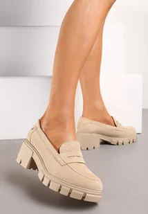 Beżowe Półbuty ze Skórzaną Wyściółką na Słupku z Okrągłym Noskiem Uraslline