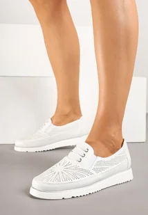 Białe Półbuty ze Skórzaną Wkładką i Ozdobną Perforacją Jolmio