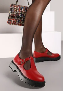 Bordowe Półbuty na Platformie Wykończone Sprzączką Berilora
