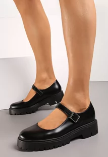 Czarne Klasyczne Półbuty ze Sprzączką na Grubej Podeszwie Nerlita