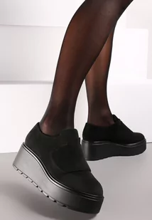 Czarne Półbuty na Koturnie z Platformą i Zapięciem na Rzep Weara