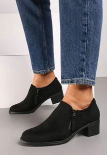 Czarne Półbuty na Słupku z Niską Cholewką Ozdobioną Suwakiem Ansolee