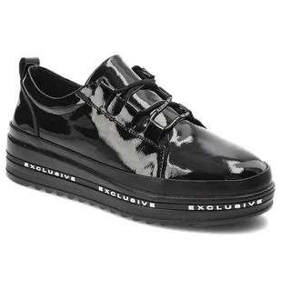 Buty damskie sneakersy czarne na platformie skórzane S.Barski LR370-36