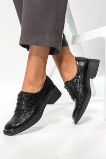 Czarne półbuty skórzane damskie lakierowane sznurowane wężowy wzór PRODUKT POLSKI Casu 591-39