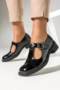 Czarne półbuty skórzane damskie lakierowane z wycięciami PRODUKT POLSKI Casu 585-38