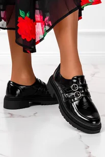Czarne półbuty skórzane na platformie lakierowane z klamrami produkt polski casu m07-no-36 - Casu