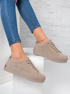 Filippo Półbuty damskie skórzane zamszowe na platformie beżowe-41