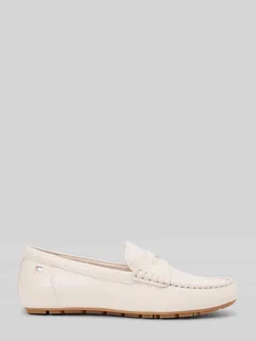 Mokasyny damskie od Tommy Hilfiger;efekt: jednolity kolor;aplikacja: detal z logo;Materiał: czysta skóra