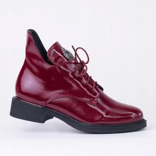 Oficerki półbuty GOODIN GD-FL2068A skóra lakier zdobienie obcas burgund 36 Eleganckie botki damskie od marki GOODIN – styl, komfort i jakość w jednym! Te botki to połączenie klasycznego stylu z modnym akcentem, który przyciąga wzrok. Idealne na sezon jesienno-zimowy dla kobiet ceniących elegancję i wygodę. Materiał: wysokiej jakości skóra ekologiczna – gładka, łatwa w pielęgnacji Wiązanie: klasyczne sznurówki pozwalające idealnie dopasować but do stopy Zapięcie: boczny zamek błyskawiczny – szybkie i wygodne zakładanie Ozdoba: