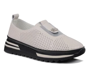Półbuty damskie beżowe skórzane S.Barski LR61-7092 na platformie wsuwane-40