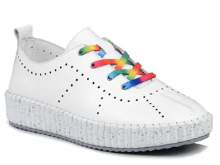 Półbuty damskie białe skórzane sznurowane Loretta Vitale 5014-39