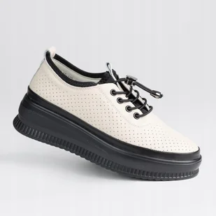 Półbuty damskie skóra naturalna ażurowa GOODIN GD-XF-177 beż lekkie 41 NIETUZINKOWA PROPOZYCJA SKÓRZANYCH PÓŁBUTÓW OD GOODIN Cholewka wykonana z naturalnej skóry licowej ażurowej. Zastosowanie ażurka zapewnia dobrą cyrkulację powietrza wewnątrz obuwia. Wiązanie jest dość nietypowe, za pomocą ściągacza, jest to rozwiązanie szybsze i wygodniejsze niż tradycyjne sznurowanie. Taka forma wiązania pozwala na dopasowanie obuwia do stopy. Wkładka w prezentowanym modelu wykonana jest z naturalnej skóry licowej.