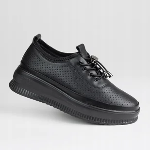 Półbuty damskie skóra naturalna ażurowa GOODIN GD-XF-177 czarne lekkie 36 NIETUZINKOWA PROPOZYCJA SKÓRZANYCH PÓŁBUTÓW OD GOODIN Cholewka wykonana z naturalnej skóry licowej ażurowej. Zastosowanie ażurka zapewnia dobrą cyrkulację powietrza wewnątrz obuwia. Wiązanie jest dość nietypowe, za pomocą ściągacza, jest to rozwiązanie szybsze i wygodniejsze niż tradycyjne sznurowanie. Taka forma wiązania pozwala na dopasowanie obuwia do stopy. Wkładka w prezentowanym modelu wykonana jest z naturalnej skóry licowej.