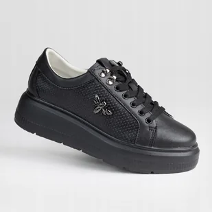 Półbuty damskie skóra naturalna GOODIN GD-XF-161 czarne lekkie 39 KLASYCZNA PROPOZYCJA DAMSKICH PÓŁBUTÓW GOODIN ZE SKÓRY NATURALNEJ. Przepiękna propozycja damskich butów marki GOODIN na Wiosnę! Cholewka w prezentowanym modelu wykonana jest z naturalnej skóry licowej. Nietypowa faktura obuwia po bokach dodaje nietuzinkowego wyglądu. Po zewnętrznej stronie cholewki znajdziemy ozdobną broszkę w kształcie muchy. Obuwie wiązane jest w tradycyjny sposób na płaskie sznurówki w kolorze obuwia.