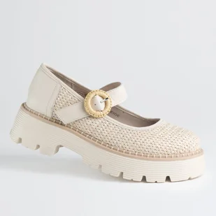 Półbuty damskie skóra plecione GOODIN GD-WL-74 beż pasek lekkie wygodne 38