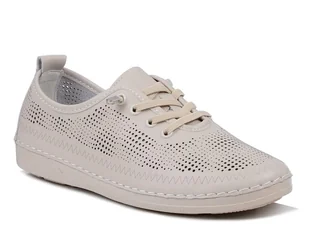 Półbuty damskie skórzane beżowe S.Barski LR61-7083 ażurowe wsuwane-36
