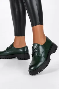 Półbuty Sergio Leone damskie niskie glany sznurowane ze skórzaną wkładką zielone PB201-40