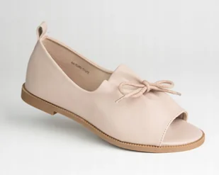 Sandały damskie półbuty GOODIN GD-FL859 skóra eko beż lekkie wsuwane 40 Przepiękna propozycja klasycznych sandałków marki GOODIN. Buciki wykonane z najwyższej jakości skóry ekologicznej. Cholewka została ozdobiona sznureczkiem zawiązanym w kokardę. Nosek w bucie jest wycięty. Wkładka w prezentowanym obuwiu wykonana jest ze skóry naturalnej.