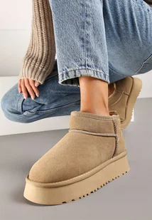 Beżowe Śniegowce na Platformie z Naturalnego Zamszu Maziera